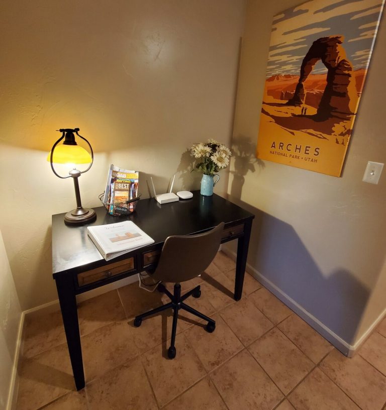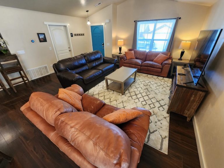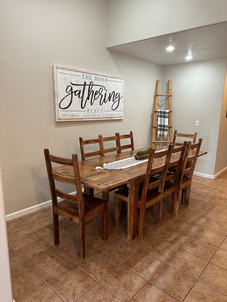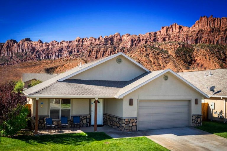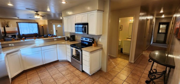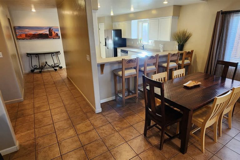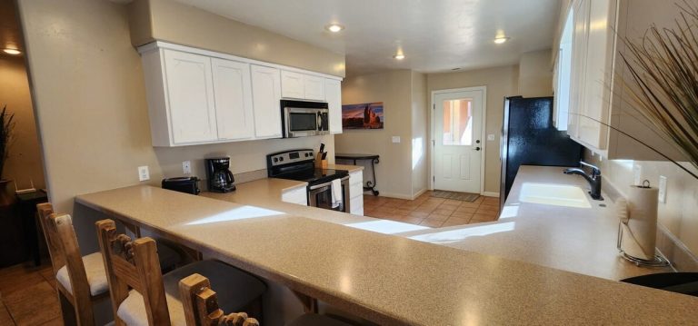 In a quiet, beautiful neighborhood, this home has views of Moab Rim! 3 King Bedrooms! BDRM 1: King Bed & private bath. BDRM 2: King Bed, BDRM 3: King Bed. Living ...