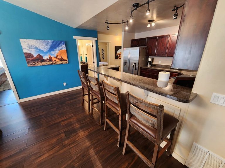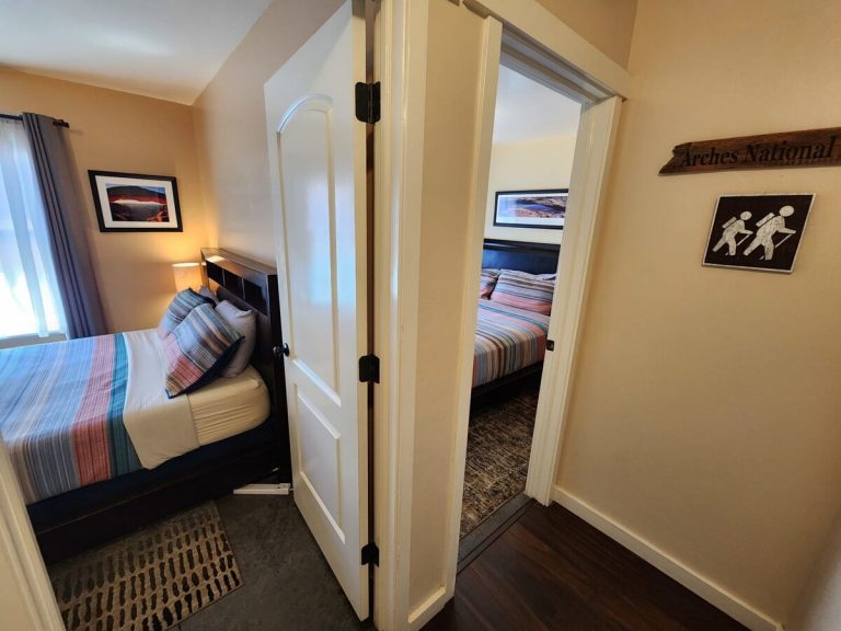 Stellar Views of Moab Rim and the San Juan Mountain. Lots of parking! BDRM 1: King Bed, private master bath, BDRM 2: King Bed, Private Entrance, BDRM 3: Queen Bed. Pullout Sofa ...