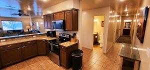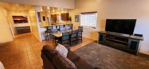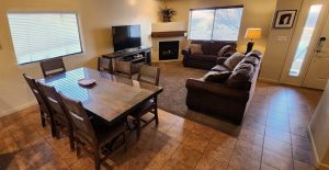 Our entire Vacation Property is 1 story with easy access to our amenities including our community Pool and Hottub. Living room has gas fireplace, attached garage includes opener for easy drive up access.