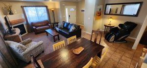 Our entire Vacation Property is 1 level with easy access to our amenities including our community pool and hot tub. Living room has gas fireplace, attached garage includes opener for easy drive up access.