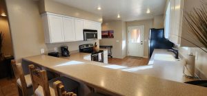 Equipped Kitchen: Guests prepare group and family meals with kitchen supplies including: Coffee Maker, Bean Grinder, Toaster, Ice Maker, Blender, Microwave, Dishwasher, Stove, Oven, Refrigerator, Plates, Cups, Glasses, Silverware, and Utensils etc…