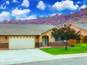“Best of Moab Vacation Homes” Tierra Del Sol – Prime location, 3 King Bedrooms, double wide roads, plenty of free parking for trailers, large families and friendly groups. Clean, Private, Suburban development with community Pool and Hot Tub. No stairs, all single story living. Moab Rim Views, San Juan Mountains, Open floor plans designed for group vacations, family interaction, and room to spread out among the magnificent views surrounding our Vacation Home. Includes Massage Chair next to living room.
